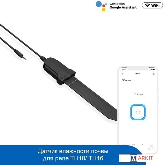 Sonoff MS01 работает с TH10 / 16 для контроля влажности почвы ваших растений.Подходит для автоматического полива в соответствии с установленным значением влажности.Водонепроницаемость IP55 гарантирует, что вы будете поливать цветы свободно, не вынимая датчик.Удобно спрашивать у Google Ассистента влажность.Используйте удлинитель AL560 для увеличения расстояния измерения.Размер 130x30x13 ммДлина кабеля 50 см