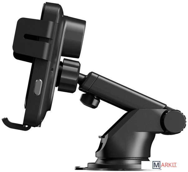 Автомобильный держатель телефона с функцией беспроводной зарядки. С ним ваш смартфон будет находиться у вас на виду и одновременно заряжаться без необходимости каждый раз подключать к нему провод питания.В комплект входят два типа крепления: зажим с защитой от падения на дефлектор вентиляции и присоска на лобовое стекло или приборную панель машины. Телескопический механизм позволяет выставить идеально удобное положение держателя.Боковые зажимы регулируются по ширине, обеспечивая совместимость с гаджетами разного размера, включая крупные. Водителю ничего не нужно делать вручную: фиксация происходит автоматически с помощью электропривода. Нужно лишь коснуться сенсорной панели на боковине.Поддерживается беспроводная зарядка до 15 W с защитой от перегрева и перенапряжения.