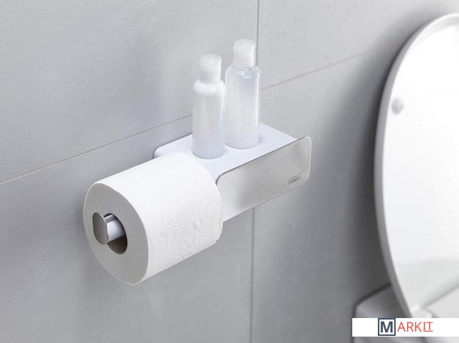 Отсек для хранения средств личной гигиены.Удобная полка для хранения.Противоскользящий держатель рулона.Отделка из нержавеющей стали.Простота установки-все инструкции и винты в комплекте.