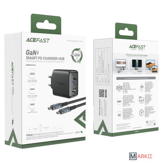 Markit » USB-хабы и док-станции » Док-станция AceFast A17 GaN PD65W EU (черный)