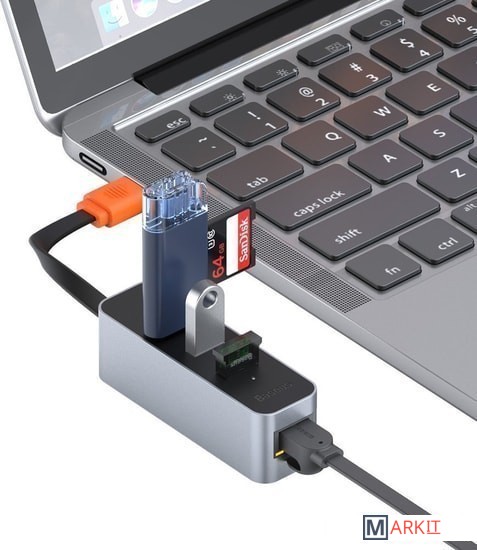 Все разъемы на адаптере USB-A 3.2 Gen1 (5 Гбит/с), RJ-45