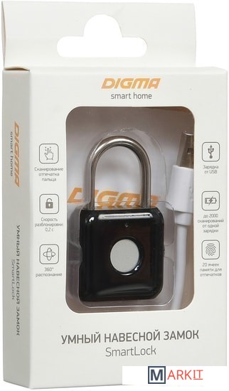 Замок электромеханический со встроенным сканером отпечатка пальца. Поддерживается до 20 ячеек памяти для разных пальцев. Прочный металлический корпус надёжно защищает замок от внешних воздействий и возможности взлома.