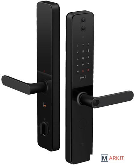 6 способов открытия замка:- по отпечатку;- кодом;- временным кодом;- по Bluetooth со смартфона;- по NFC;- ключом;- HomeKit.Благодаря собственной камере с высоким разрешением и широким углом обзора умный замок Xiaomi прекрасно видит все, что происходит перед входной дверью, захватывая даже близко стоящие фигуры с головы до пят.С помощью собственного датчика присутствия умный замок Xiaomi видит, когда кто-то подозрительно долго стоит у двери, при этом он автоматически включает запись видео и отправляет уведомление на смартфон хозяина.Камера умного замка Xiaomi оснащена чувствительным датчиком света. При падении уровня окружающего освещения автоматически включается режим инфракрасной ночной съемки. Невидимые человеку световые лучи с длиной волны 940 нм освещают даже кромешную тьму, гарантируя четкую картинку в любых условиях.Подключите умный замок Xiaomi к Bluetooth-шлюзу, чтобы открыть безграничные возможности по его включению в умные сценарии работы с другими устройствами. При этом для каждого пользователя при входе по отпечатку можно создавать уникальные сценарии с включением разных устройств.Камера может работать от собственного литиевого аккумулятора, а сам замок - от четырех батареек. Когда уровень заряда падает ниже 20%, он автоматически отправляет напоминание о замене батареек, а даже если Вы забыли их поменять, на внешней панели есть порт для экстренного питания от внешнего источника.
