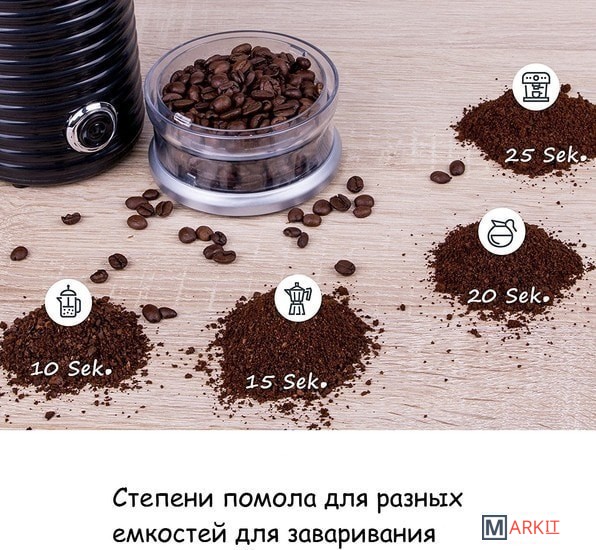 | Вместимость контейнера для зерен | 65 г |