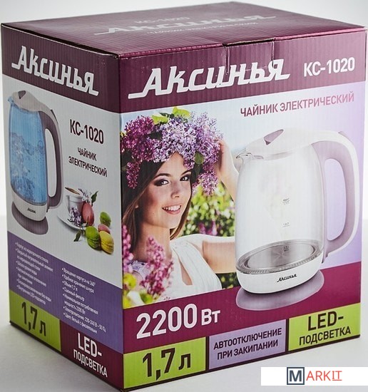 Markit » Электрочайники и термопоты » Электрический чайник Аксинья КС-1020 (белый/фиолетовый)