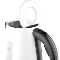 Металлический электрочайник белого цвета соStrix-контроллером для защиты от перегрева. Объем чайника EKL-F300W составляет 1,7 литра, а подставка обеспечивает оборот на 360°. Материал подставки, основы и ручки — поликарбонат черного цвета. Основная часть чайника выполнена из окрашенного металла, а шкала с отметками объема от 0.5 л до 1.7 л получила LED-подсветку.