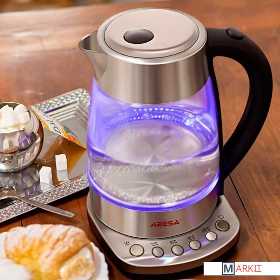 Чайник электрический ARESA AR-3460, объемом 1,7 л.– прибор который соответствует всем сертификационным нормам. Чайник ARESA AR-3460 прошел контроль в лаборатории при Министерстве Здравоохранения Республики Беларусь и не выделяет в воду вредных веществ. Модель может быть использована при приготовлении смесей для детского питания. Корпус чайника ARESA AR-3460, состоит из высококачественного боросиликатного закаленного стекла. Благодаря чему он не пожелтеет во время использования и прослужит долгие годы. Чайник ARESA AR-3460 оборудован высококачественным контроллером STRIX – системой, которая отвечает за отключения чайника при закипании. Этот контроллер позволит чайнику прослужить в 5 раз дольше, чем более дешевые аналоги. LED подсветка позволит четко контролировать процесс закипания и уровня воды в приборе. Чайник ARESA AR-3460 обладает регулировкой температуры на платформе изделия. 4 ступени регулировки (70, 80, 90, 100) позволят добиться необходимой температуры быстро и качественно. ARESA – белорусский бренд бытовой техники. Наша техника проходит сертификацию на территории Республики Беларусь в едином центре ГОССТАНДАРТА. Кроме сертификатов таможенного союза, полученных на территории Республики Беларусь, техника ARESA соответствует всем нормам сертификации Европейского Союза и поставляется на его территорию. Приобретая нашу технику, вы заботитесь о здоровье и безопасности вас и ваших близких.