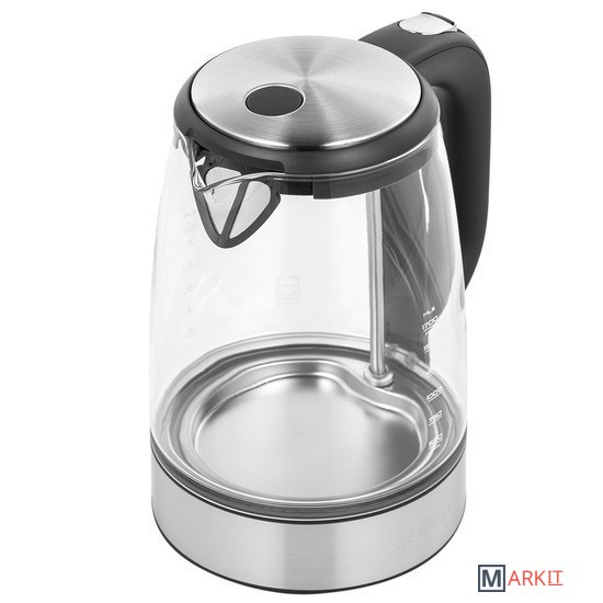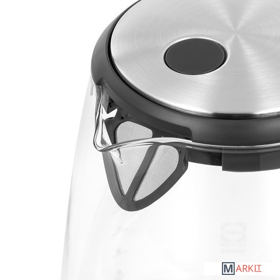 Качество и безопасностьКолба чайника изготовлена из термостойкого стекла Schott Duran, не содержащего примеси и посторонние компоненты.Защита от попадания накипиФильтр защищает от попадания накипи при наливании воды из чайника и отличается долговечностью.Стиль и удобствоПодсветка и стеклянный корпус подчеркивают изящество модели, а автоматическое отключение при отсутствии воды и прорезиненная ручка делают чайник удобным в использовании.