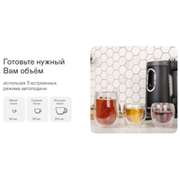 Настройка объёма порции 150 - 250 мл (±25 мл)Быстрое кипячениеАвтоотключение при закипанииАвтоотключение отсутствии воды