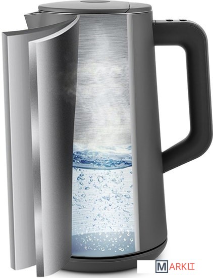 Чайник оснащён контроллером Strix.Он устраняет риски короткого замыкания и возгорания прибора.Обеспечивает защиту при закипании и при включении чайника без воды.