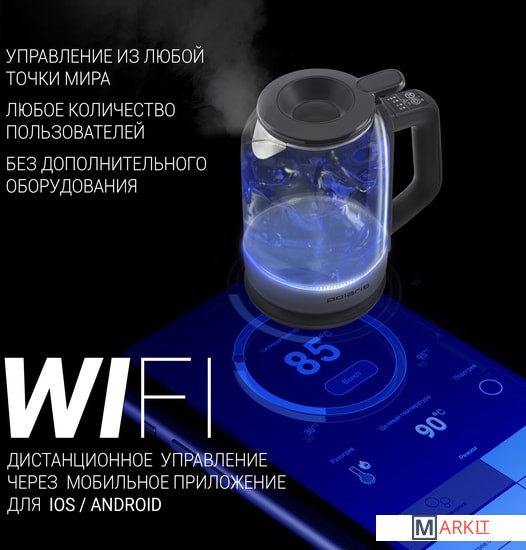 Markit » Электрочайники и термопоты » Электрический чайник Polaris PWK 1720CGLD Wi-Fi IQ Home (серый)