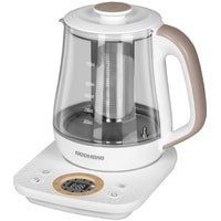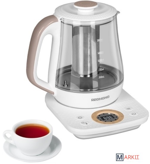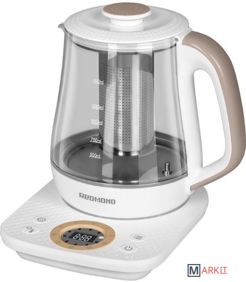 Многофункциональный чайник RK-G1307D позволяет кипятить и подогревать воду без кипячения, а также заваривать чай, готовить морс и травяные настои. Колба прибора выполнена из прозрачного термостойкого стекла, которое является полностью экологичным. Современный прибор с ярким дизайном прекрасно впишется в обстановку кухни, выполненной практически в любом стиле.Стальная сетка для завариванияЧтобы приготовить в чайнике ароматный чай или травяной настой, положите ингредиенты в специальную стальную сетку для заварки, налейте воду и установите подходящую температуру. RK-G1307D приготовит напиток по вашему вкусу и будет держать его теплым в течение 24-х часов.6 режимов нагреваЧайник поможет заварить ваши любимые горячие напитки при правильной температуре, чтобы они раскрыли все ноты вкуса и аромата. Выберите один из установленных температурных режимов:-35°C — детское питание, спортивные коктейли-60°C — желтый, зеленый чай-80°C — белый чай, каркаде-90°C — улун, ромашковый чай-95°C — черный чай, кофе-100°C — кипячениеИли устанавливайте нужную температуру самостоятельно, в RK-G1307D это можно сделать с точностью до 1 °C.Сенсорная панельУправлять чайником просто, благодаря сенсорной панели со светодиодным дисплеем. Одно касание, и вы можете включить кипячение воды, установить температуру нагрева, чтобы правильно заварить различные виды чая, настроить звуковой сигнал чайника, а также поставить блок, защищающий панель от детей.Контактная группа Strix®В чайник встроена контактная группа Strix®, рассчитанная на 12 000 циклов закипания. Она расположена ровно посередине подставки, что обеспечивает чайнику свободное вращение на 360°. Вы можете развернуть носик чайника в сторону, чтобы пар от кипящей воды не повредил обои, кухонную мебель или технику.АвтоотключениеТермодатчики Strix® автоматически отключают прибор, если вода закипает или ее недостаточно, а также при снятии с подставки.Комфортное использованиеУ модели широкая горловина, а крышка полностью снимается — его легко наполнять водой, чистить и мыть. Провод чайника можно убрать в специальный отсек, если вся длина вам не требуется.
