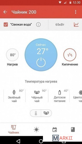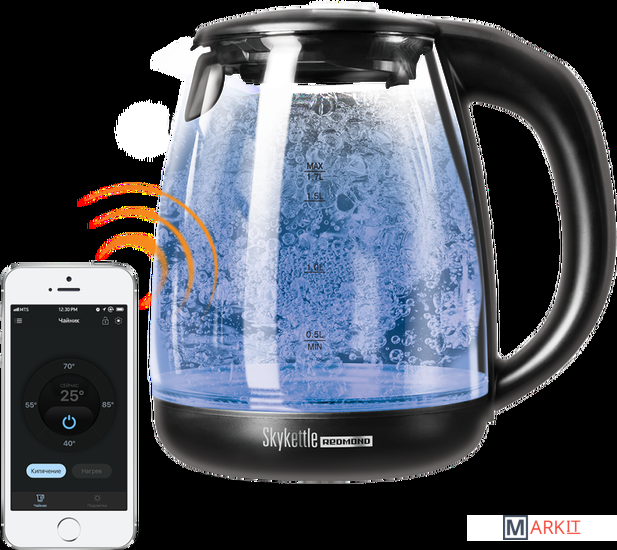 Чайник оснащен уникальной функцией Smart Boil, которая позволяет пользователю самостоятельно регулировать интенсивность кипения воды через приложение. Функция разработана для того, чтобы предотвратить обильное парообразование и добиться оптимального уровня минерализации кипяченой воды. Для владельцев умных чайников в мобильном приложении Ready for Sky предусмотрен приятный бонус – встроенная книга рецептов чая. Просто выберите подходящий рецепт чая, подготовьте ингредиенты для него и запустите подогрев воды в один клик.