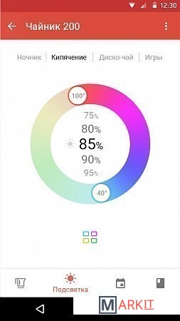 40°C, 55°C, 70°C, 85°C (в мобильном приложении можно настроить температуру с точностью до 1°C)