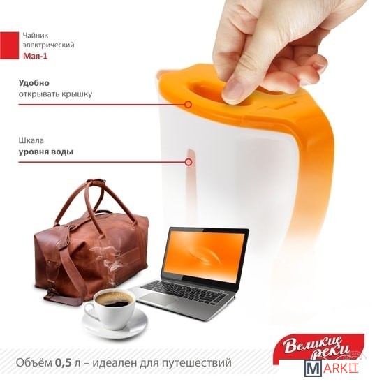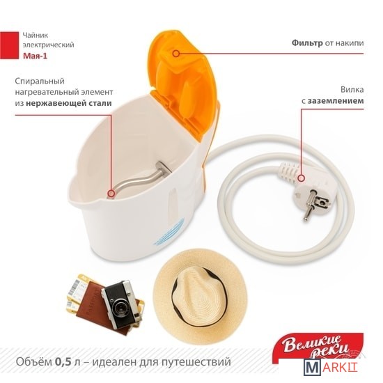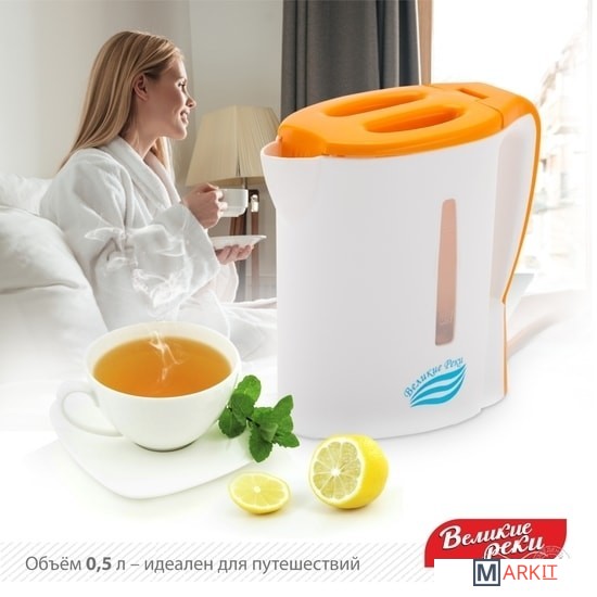 Markit » Электрочайники и термопоты » Электрический чайник Великие Реки Мая-1 (белый/оранжевый)