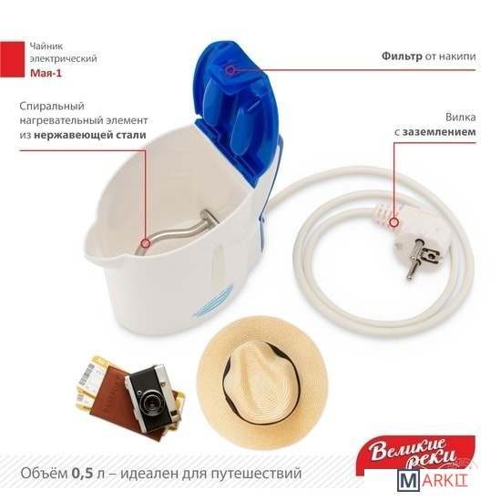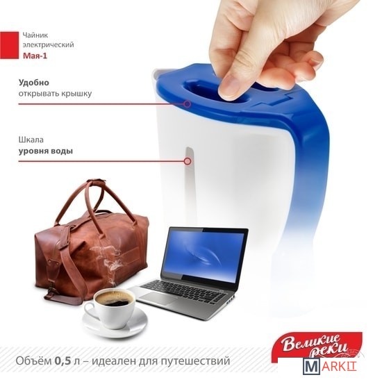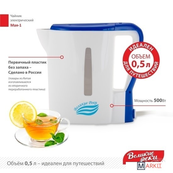 Markit » Электрочайники и термопоты » Электрический чайник Великие Реки Мая-1 (белый/синий)