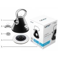 Крышка с кристаллами СваровскиВыпуклый носикСъемный металлический фильтр для накипиИндикатор температуры-Чайник оснащен специальным термометром для индикации текущей температуры воды. Это позволяет легко проверять и регулировать температуру воды в соответствии с индивидуальными потребностями без необходимости использования сторонних термометров.Эта функция особенно полезна при приготовлении напитков или тортов, требующих определенной температуры для достижения наилучших результатов.Контроллер StrixОтсек для хранения шнура питанияПротивоскользящие ножкиТермостойкая хромированная эргономичная ручкаКорпус из нержавеющей стали покрыт глянцевой эмальюПереключатель с подсветкойНагреватель: скрытый, пластинчатыйОснование: поворотное, 360 °Декоративные элементы: хромированные детали, крышка с кристаллами Swarovski, основание с декоративным кольцом.Прочее: изогнутый носик, съемная крышка, большой наполнитель для чайника, компактные размеры.Штепсельная вилка польская 220-240V 50 / 60Hz