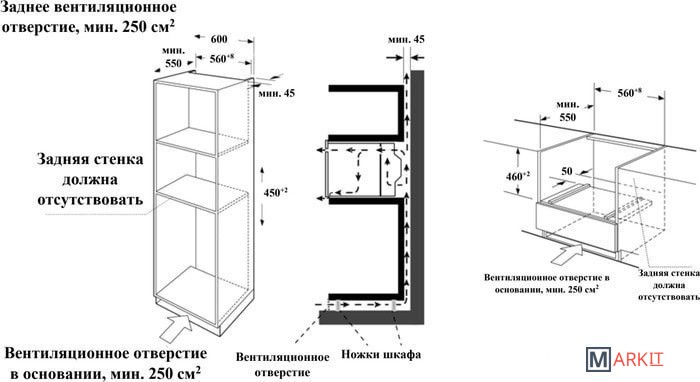 Размеры ниши для встраивания