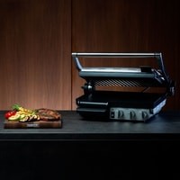 Высокая мощностьНагревательный элемент мощностью 2400 Вт позволяет быстро осуществить прогрев панелей.Прочное покрытиеТрехслойное антипригарное покрытие Quantanium устойчиво к повреждениям, легко очищается и позволяет готовить блюда без масла.Контроль готовностиТаймер с возможностью установки времени приготовления до 15 минут напомнит о готовности блюда.