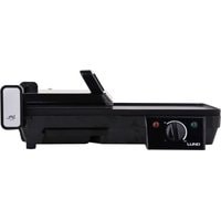 2в1 - настольный гриль и тостерРазмер плиты: 18 х 24,5 смзакрытая площадь гриля: 1012,5 см2площадь открытого гриля: 1453,5 см2антипригарное покрытие, которое легко чиститьтарелка с двумя типами поверхности нагрева - плоской и рифленой - позволяет адаптировать ее к типу поджаренных продуктов и равномерно поджаривать.элементы из нержавеющей стали на корпусеконтроль температурыиндикатор питания и режима ожидания3 варианта гриля - решетка в сложенном виде, решетка разложена на 90 °, решетка разложена на 180 °регулировка нагревательных пластин по высоте поджаренных продуктовкрутая ручкаподдон для сбора жиракабель: 80 смболее высокий край облегчает поддержание чистоты в зоне гриля.