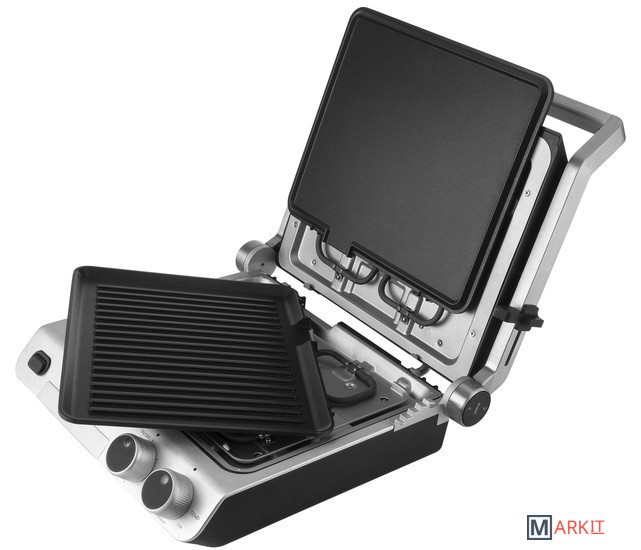 Два типа пластин:- верхняя гладкая пластина- нижняя рифленая пластина гриля.