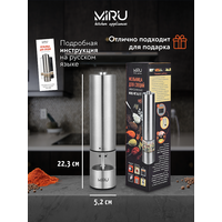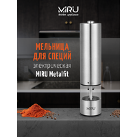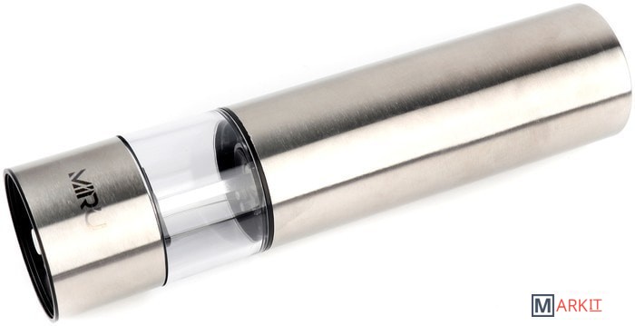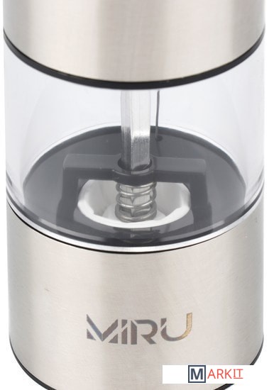 Электрическая мельница для специй MIRU METALFIT KA023 станет незаменимым помощник для каждой хозяйки. Она способна с высокой эффективностью перемалывать соль, перец или набор специй. Для работы устройства необходимо вставить 4хAA батарейки (в комплект не входят), наполнить колбу специями и нажать кнопку включения. Устройство перемелет необходимое количество пряностей. Принцип работы основан на взаимодействии двух керамических жерновов, представляющих собой два круга, один из которых закреплён неподвижно, а другой под воздействием электричества приходит в движение, перемалывая специи. Керамика ценна тем, что она никак не влияет на вкус специй, в отличие от других материалов, способных оставить лёгкий привкус.Особенности:- Керамические жернова.- Регулировка тонкости помола.- Объём 75 мл.- LED-подсветка.- Питание от 4хAA батареек (в комплект не входит).- Удобная кнопка включения.