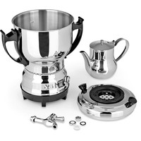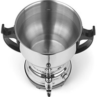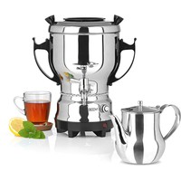 Высококачественный электрический самовар из нержавеющей стали со сливным краном для приготовления горячей воды и чая.Контейнер для воды на 3 л и заварочный чайник на 1 л для непрерывного чаепития дома или в ресторанеС бесступенчатой регулировкой температуры для поддержания тепла при желаемой температуреМощная мощность до 2200 Вт, корпус из высококачественной нержавеющей стали и изящные черные аппликации.Чайник можно использовать как в коммерческих целях, так и дома.