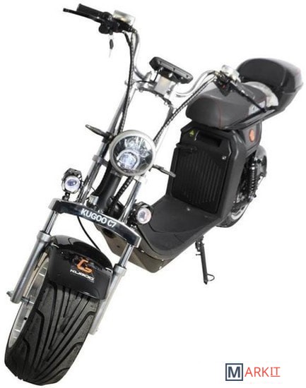 Большой и мощный электроскутер Kugoo C7 способен проехать до 70 км за счет ёмкого аккумулятора на 50 000 mAh. Мягкое сиденье рассчитано для 2 человек. А специальные подставки для ног сделают второму пассажиру поездку еще более комфортной.Передняя фара (дальний и ближний свет).