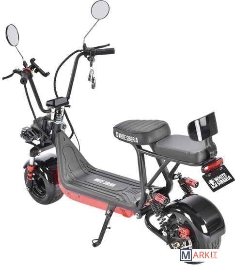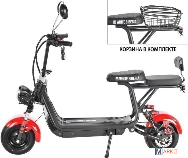 Модель можно модифицировать под Ваши потребности: скутер стандартно комплектуется сиденьем с мягкой спинкой для пассажира и вместительной корзиной. Что устанавливать — решать только Вам!Возможность установить вторую батарею и проезжать до 100 км.