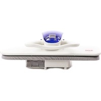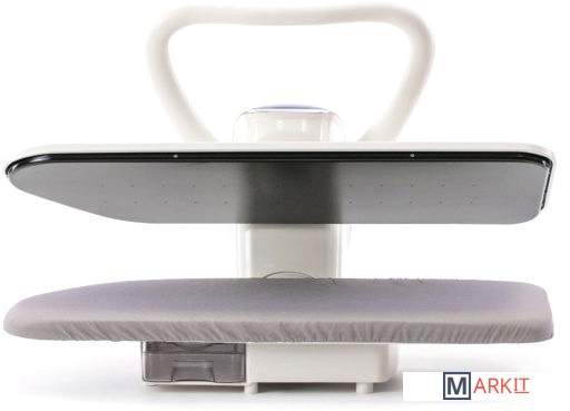 Нагрев и подача пара сверху и снизуРазмеры рабочей поверхности - 820 х290мм. Паропроизводительность пара повышенная (режим "Booster") - 120г/мин. Гладильный пресс обладает встроенным микроконтроллером температуры и антиминеральным картриджем. Тип управления - электронный. В комплект входит чехол для платформы пресса, два сменных картриджа-фильтра, бутыль-пульверизатор, покрытая тканью объемная подкладка для утюжки контурных областей.