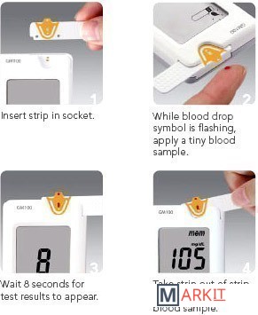 Система контроля уровня глюкозы в крови Rightest серии «Slim» GM100 предназначена для внешней диагностики in vitro (для самоконтроля и профессионального использования). Для проведения анализа Вам нужна проба капиллярной крови из кончика пальца, ладони или плеча, которую Вы можете получить с помощью соответствующего ланцетного устройства.