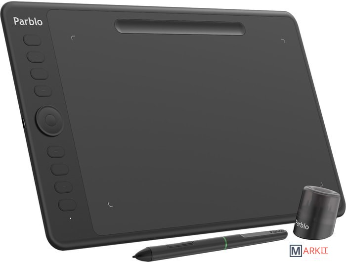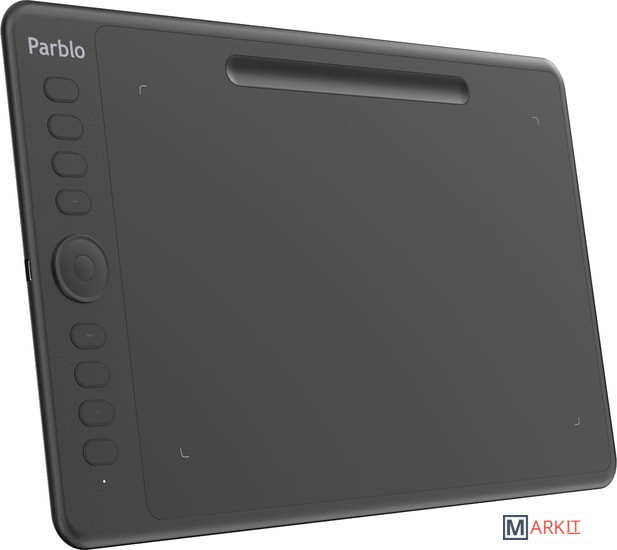 Новое поколение графических планшетов:- Серия цифровых планшетов Intangbo использует инновационную технологию беспроводной пассивной электромагнитной индукции и функцию определения наклона пера до 60 градусов. Теперь устройство возможно подключать к системе Android и использовать с различными программами для рисования на мобильных телефонах и планшетах.Дизайн устройства:- Рабочая область Intangbo M составляет около 10*6,25 дюйма, цвет продукта - Star Black.Общий дизайн выполнен с использованием стандартной компоновки 8 клавиш с левой стороны и колеса с механической осью, которое находится посередине области кнопок. Все клавиши легко настраиваются в интерфейсе драйвера устройства для повышения творческой эффективности.Максимальная функциональность:- Перо графического планшета имеет беспроводную технологию пассивной электромагнитной индукции, ручка для рисования не требует батареи или зарядки.8192 уровня чувствительности к давлению обеспечивают более тонкое и качественное рисование. Поддержка функции определения наклона пера ±60 градусов поможет вам профессионально штриховать и затенять изображения. Скорость чтения рукописного ввода составляет 266RPS, поэтому рисование плавное и без задержек.Режим левши:- Графический планшет Parblo Intangbo M (Black) поддерживает режим для левшей и для правшей для различных сценариев использования.Совместимость:- Windows: 7/8/10 (32/64 бит) или новее - Mac OSX: 10.11 или новее - Android 6.0 или новее
