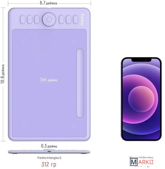 Новое поколение графических планшетов:- Серия цифровых планшетов Intangbo использует инновационную технологию беспроводной пассивной электромагнитной индукции и функцию определения наклона пера до 60 градусов. Теперь устройство возможно подключать к системе Android и использовать с различными программами для рисования на мобильных телефонах и планшетах.Дизайн устройства:- Рабочая область Intangbo M составляет около 10*6,25 дюйма, цвет продукта - Star Black.Общий дизайн выполнен с использованием стандартной компоновки 8 клавиш с левой стороны и колеса с механической осью, которое находится посередине области кнопок. Все клавиши легко настраиваются в интерфейсе драйвера устройства для повышения творческой эффективности.Максимальная функциональность:- Перо графического планшета имеет беспроводную технологию пассивной электромагнитной индукции, ручка для рисования не требует батареи или зарядки.8192 уровня чувствительности к давлению обеспечивают более тонкое и качественное рисование. Поддержка функции определения наклона пера ±60 градусов поможет вам профессионально штриховать и затенять изображения. Скорость чтения рукописного ввода составляет 266RPS, поэтому рисование плавное и без задержек.Режим левши:- Графический планшет Parblo Intangbo M (Black) поддерживает режим для левшей и для правшей для различных сценариев использования.Совместимость:- Windows: 7/8/10 (32/64 бит) или новее - Mac OSX: 10.11 или новее - Android 6.0 или новее