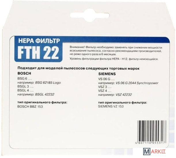 Markit » Аксессуары для пылесосов, пароочистителей » HEPA-фильтр Filtero FTH 22