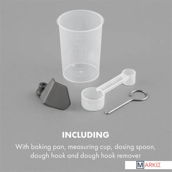| Комплект поставки | форма для хлеба; крючок для замеса; мерный стаканчик (чашка); мерная ложка; приспособление для снятия крючка для замеса; руководство пользователя |