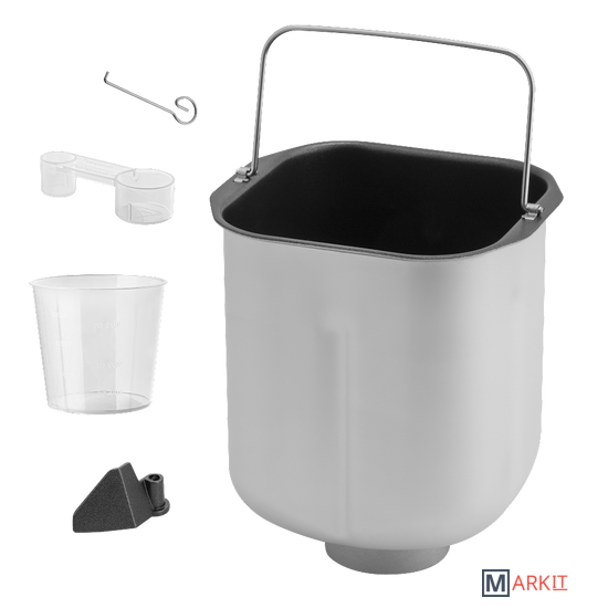 | Комплект поставки | - хлебопечь с формой для выпечки;- лопатка для замеса теста;- крюк для извлечения лопатки;- мерная ложка;- мерный стакан. |