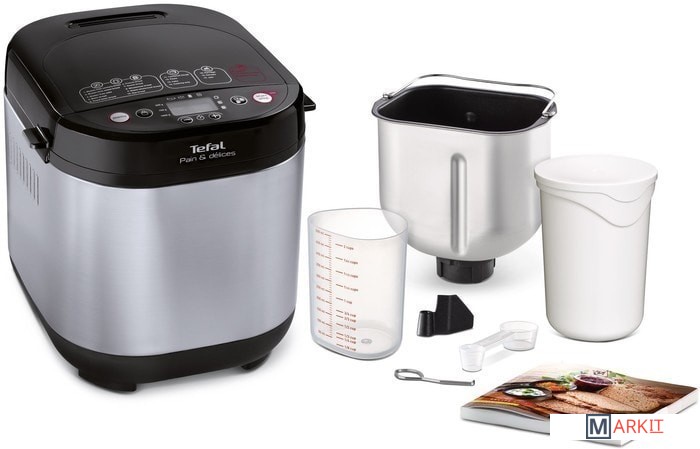 Хлебопечь.Мерный стакан.Мерная ложка.Лопатка для замеса теста.Крюк для извлечения лопатки замеса теста.Стаканчик для йогурта 1 л.