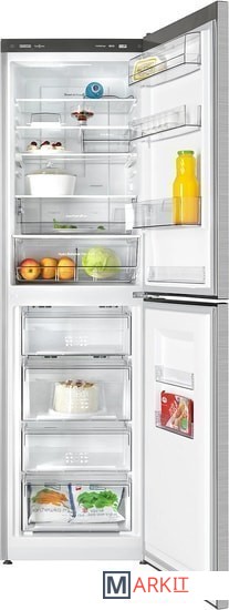 Новый холодильник 2021 года серии ADVANCE (COMFORT+) от ATLANT выполнен в современном дизайне и оснащенполностью электронным управлением.Набор инновационных технологий и полезных функций в холодильнике позволит сохранитьсвежесть продуктов надолго: система Full No Frost, датчики точного контроля и поддержаниятемпературы, отделение свежести Super Fresh Box, сосуд с возможностью регулирования уровня влажности Hydro Balance Zone. Вместе данные функции помогаютсохранить продукты свежими и полезными, как в первый день покупки.Новинка удачно сочетает в себе полезные преимущества и дополнена продуманной эргономикой,что позволяет легко организовать внутреннее пространство холодильника.На внутренней стороне двери холодильника расположены регулируемые дверные барьеры на всюширину двери, которые помогут легко организовать пространство и хранить упаковки разногоразмера. Практичной деталью оснащения прибора является передвижной подвесной сосуд Pull Box, а такжебак с крышкой для мяса или рыбы, масленка и подставка для 12 яиц. Удобная металлическаяполка для бутылок дополнила перечень преимуществ, теперь внутрихолодильника можно удобно хранить несколько бутылок с различными напитками.Морозильное отделение оснащено выдвижными корзинами разного объема, большими и малымиемкостями, которые удобны для размещения и хранения замороженных продуктов. В поддоне длязамораживания ягод и мелких продуктов удобно разместить пельмени, грибы и небольшие кускимяса, чтобы они не соприкасались друг с другом.Наличие двух унифицированных емкостей Slim Space на двери морозильного отделенияпозволяет удобно размещать продукты в небольших упаковках.Функциональный электронный блок управления с LED-дисплеем с сенсорными кнопками даритособенный комфорт в повседневной жизни и наглядно отображает температуру в каждомотделении и помогает подобрать необходимую функцию для хранения различныхпродуктов. Одним прикосновением на дисплей можно активировать необходимый режим илифункцию.Холодильник достаточно рационально расходует ресурсы благодаря высокому классуэнергоэффективности А+ и потребляет минимальное количество электроэнергии.Дополнительная комплектация:Холодильное отделение:1) Масленка2) Подвесной контейнерМорозильное отделение:1) Корзина увеличенного объёма Big Box2) Форма для приготовления льда