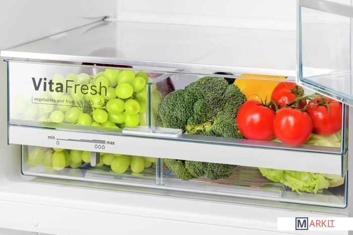 | Регулировка влажности в ящике для овощей и фруктов |