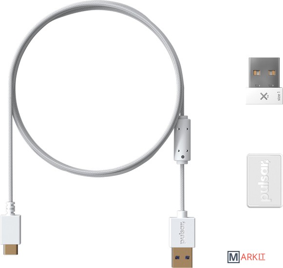 Комплектация - кабель для зарядки/проводного подключения- беспроводной приемник- адаптер USB Type-A - USB Type-C (для подключения беспроводного приемника и использования кабеля в качестве удлинителя приемника)- документация