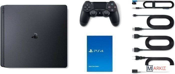 • Консоль PlayStation 4 Slim• Беспроводной геймпад Dual Shock 4• Моногарнитура• Кабель питания• HDMI-кабель• USB-кабельВертикальная подставка в комплект не входит!
