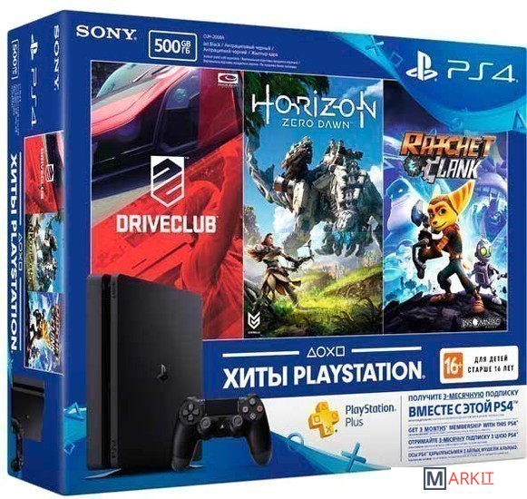 • Консоль PlayStation 4 Slim• Беспроводной геймпад Dual Shock 4• Моногарнитура• Кабель питания• HDMI-кабель• USB-кабель• PS Plus 3 мес.• 3 игрыВертикальная подставка в комплект не входит! |