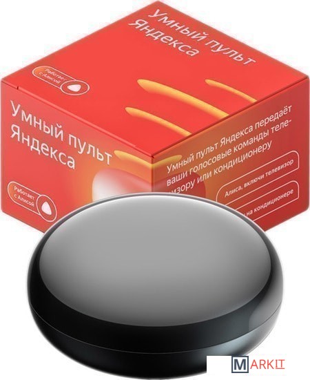 Включает, выключает и настраивает бытовую технику через инфракрасный канал. Управлять Пультом можно через приложение Яндекс или с помощью Алисы — просто скажите ей, что нужно сделать.