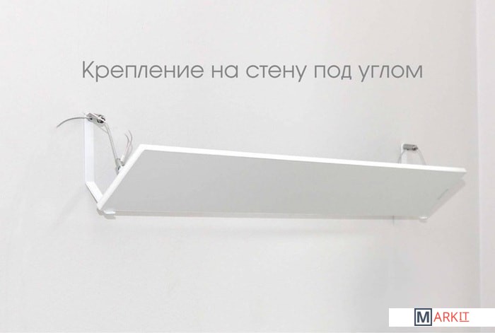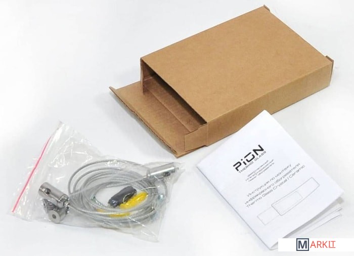 Соединение двух материалов позволило создать эффективный и надежный инфракрасный обогреватель. Новая технология позволила создать обогреватель меньшего размера, благодаря отсутствию корпусной алюминиевой рамки. А толщина обогревателя всего 10 мм, делает его элегантным и эстетически привлекательным для любого интерьера.Монтаж на потолок производится с помощью тросиков и монтажного комплекта с регулируемой высотой подвеса. Либо дополнительно можно приобрести кронштейн.