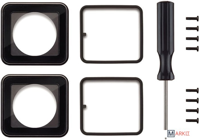 Стандартный комплект содержит все необходимое для легкой замены стеклянной линзы объектива в облегченном корпусе камер GoPro HERO3 и HERO3+.