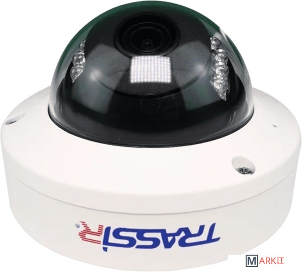 Компактная (менее 10 см) 2Мп (1920×1080) IP-камера TRASSIR TR-D3121IR1 v4 (2.8 мм) адаптирована к круглосуточной и круглогодичной эксплуатации на улице: защита корпуса от влаги и пыли отвечает требованиям стандарта IP66, диапазон рабочих температур — -40 °C… +60 °C, дальность действия встроенной инфракрасной подсветки — 15 м.