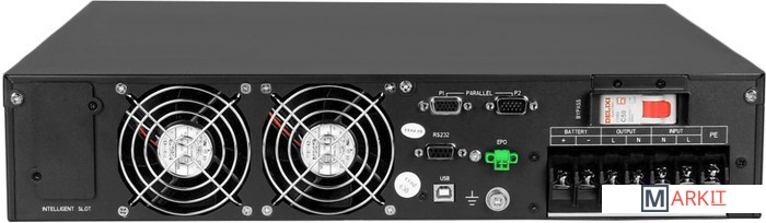 ИБП с двойным преобразованием Rack Tower универсального исполнения 4U 6000 ВА / 6000 Вт без встроенных АКБ, ЗУ 5А напряжение АКБ ±96/108/120В (16/18/20 АКБ), клеммный терминал, SNMP слот, USB, RS232, EPO (подключение внешнего батарейного кабинета)
