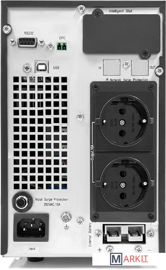 ИБП с двойным преобразованием напольного исполнения 2000 ВА / 1600 Вт без встроенных АКБ, ЗУ 10А напряжение АКБ 48 VDC (4 АКБ), 4 розетки Schuko, SNMP слот, USB, RS232, EPO