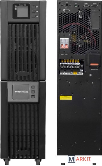 ИБП с двойным преобразованием напольного исполнения 6000 ВА / 5400 Вт встроенные АКБ в корпусе 20x9Ач, клеммный терминал, SNMP слот, USB, RS232, EPO, порты параллельного подключения