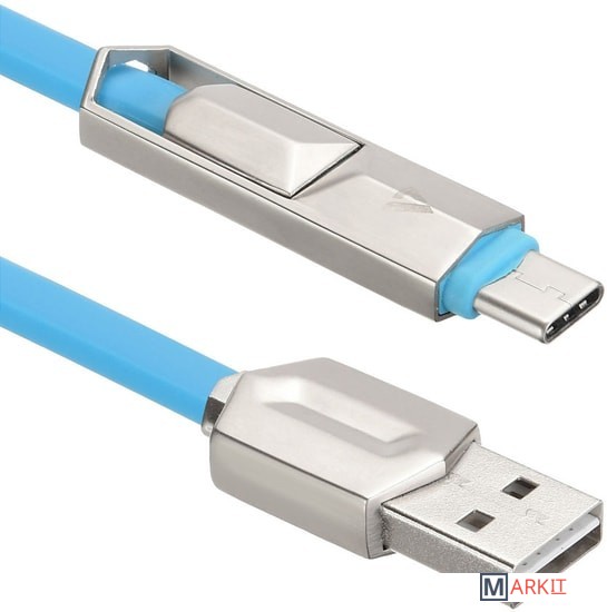 Cменный коннектор 2-в-1 позволяет подключать устройства с Micro USB или Type-C одним кабелем.